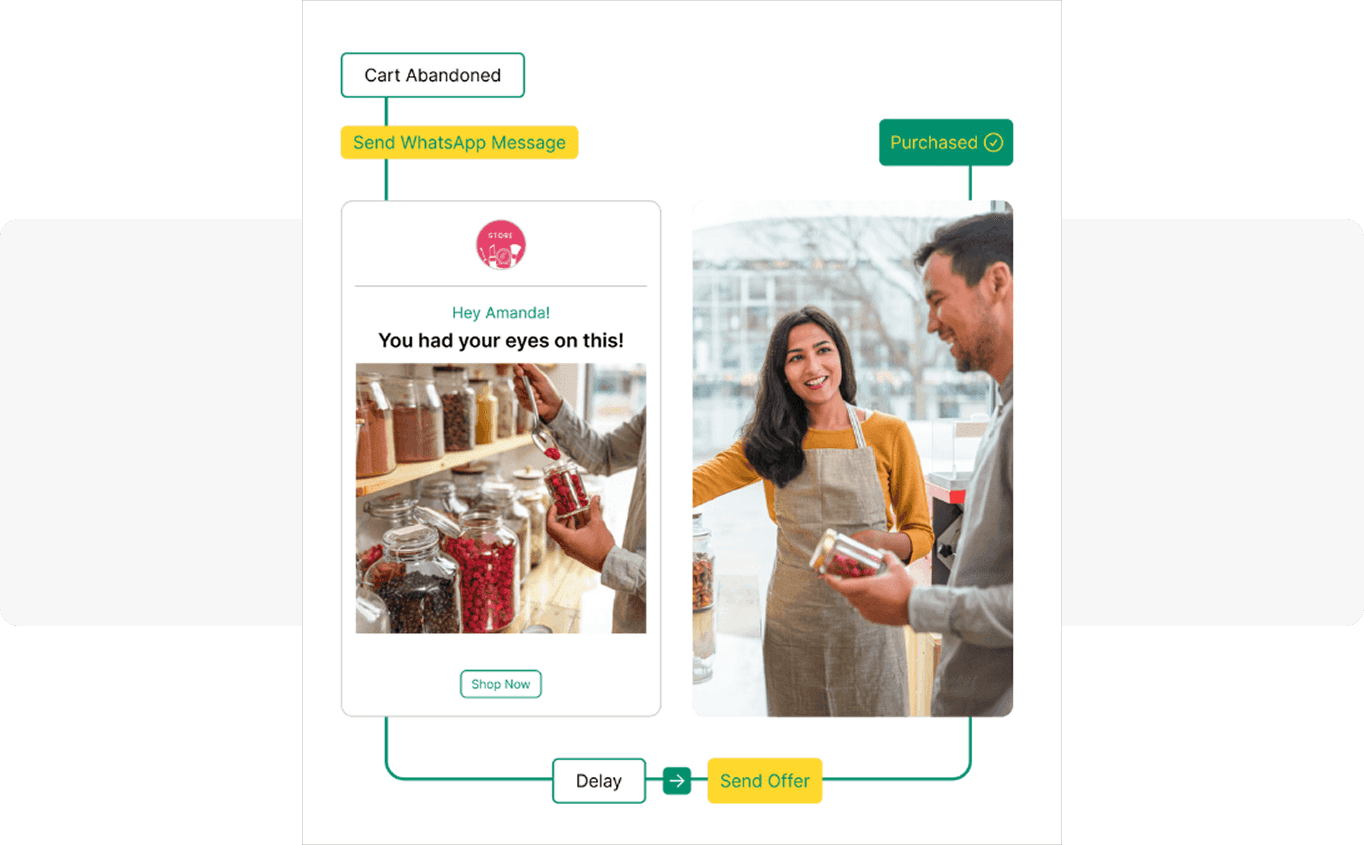 Gupshup allows you to create interactive workflows that respond to customer actions.