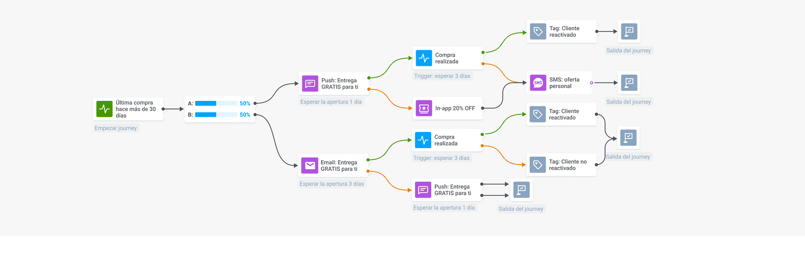 🛒Enviar mensajes desencadenados por eventos, a través de múltiples canales, como notificaciones push, email, mensajes in-app, SMS y WhatsApp permite que los usuarios te mantengan en su memoria, y estimula la realización de compras dentro de la app móvil.