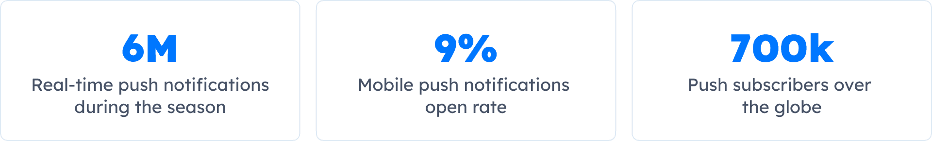 As a result of these communication activities, the FIBA team sends 6M real-time push notifications during their event season and maintains a push open rate of up to 6.45% even during the off-season.