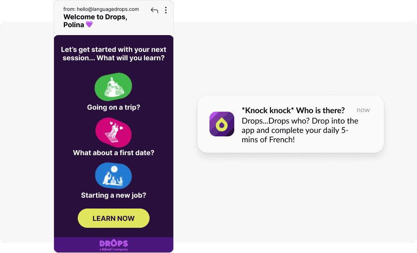 Lifecycle messaging powered by Pushwoosh allows you to establish personal and effective connections with users: you get to reach them at the key touchpoints via their preferred channels.